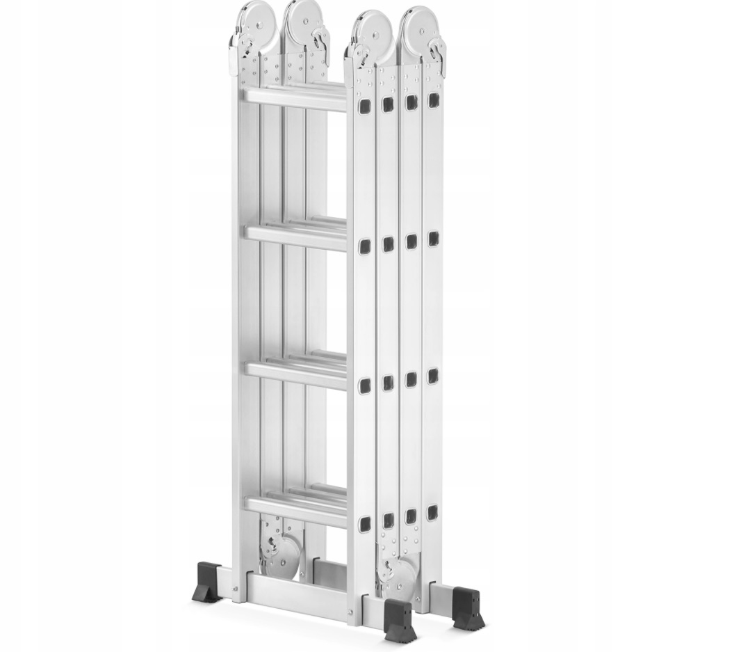 4x4 HIGHER gelede aluminium ladder met platform - dit is de meest universele ladder die op onze markt verkrijgbaar is. De ladder kan gebruikt worden als werkplatform (inclusief stalen platform, vrijstaande ladder en als leunladder. Het grootste voordeel van de ladder is zijn multifunctionaliteit en compacte afmetingen na het inklappen).