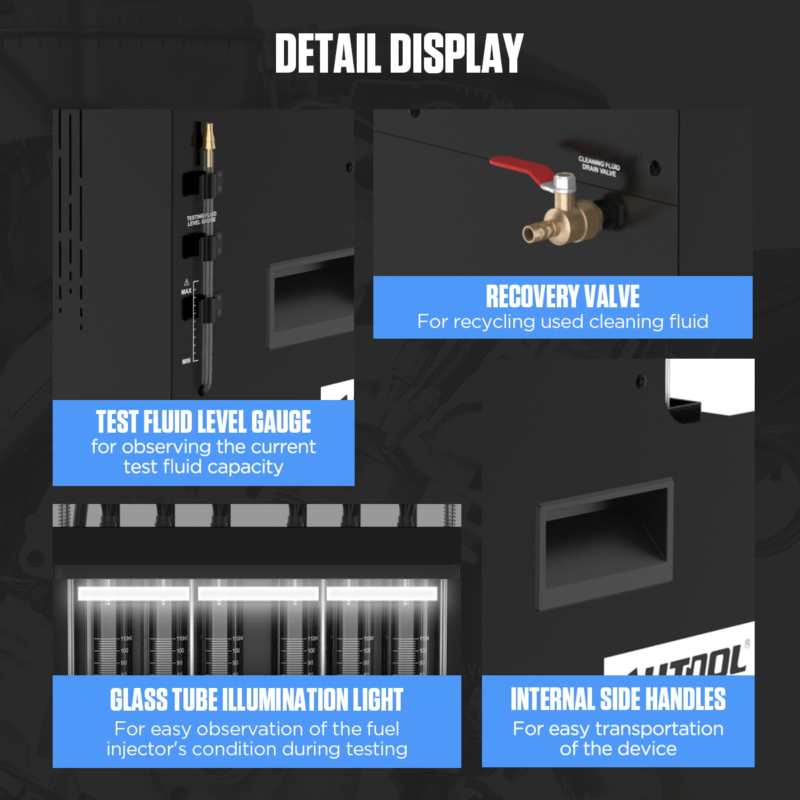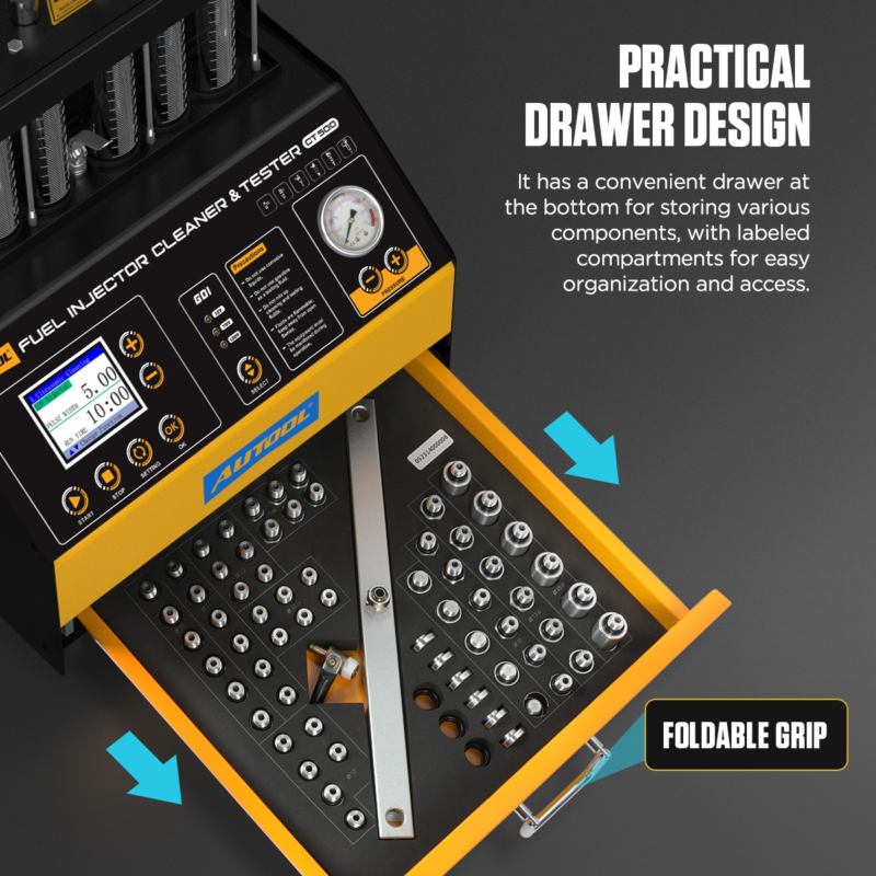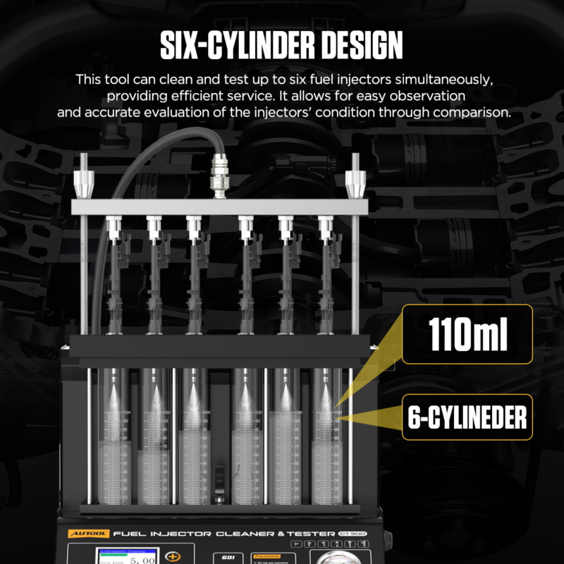 TESTDYNAMIEK EN GDIDe AUTOOL CT500 vertegenwoordigt een doorbraak in de diagnostiek van directe injectie In tegenstelling tot standaard reinigers genereert de CT500 een stuursignaal dat is aangepast aan de specifieke kenmerken van hogedrukinjectoren, wat een veilige opening en nauwkeurige prestatietests mogelijk maakt Belangrijkste diagnostische aspecten: