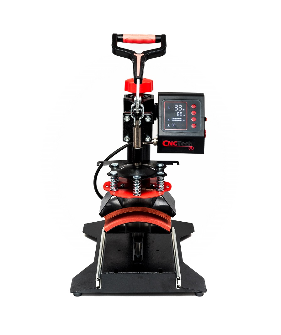 De digitale timer is instelbaar tot 999 seconden. De digitale thermometer werkt in het bereik van 0 – 250 °C. Hij is uitgerust met een automatische temperatuurregelaar, een timer die een geluidssignaal afgeeft wanneer de ingestelde tijd is verstreken, en een veermechanisme voor een traploze instelling van de persdruk.